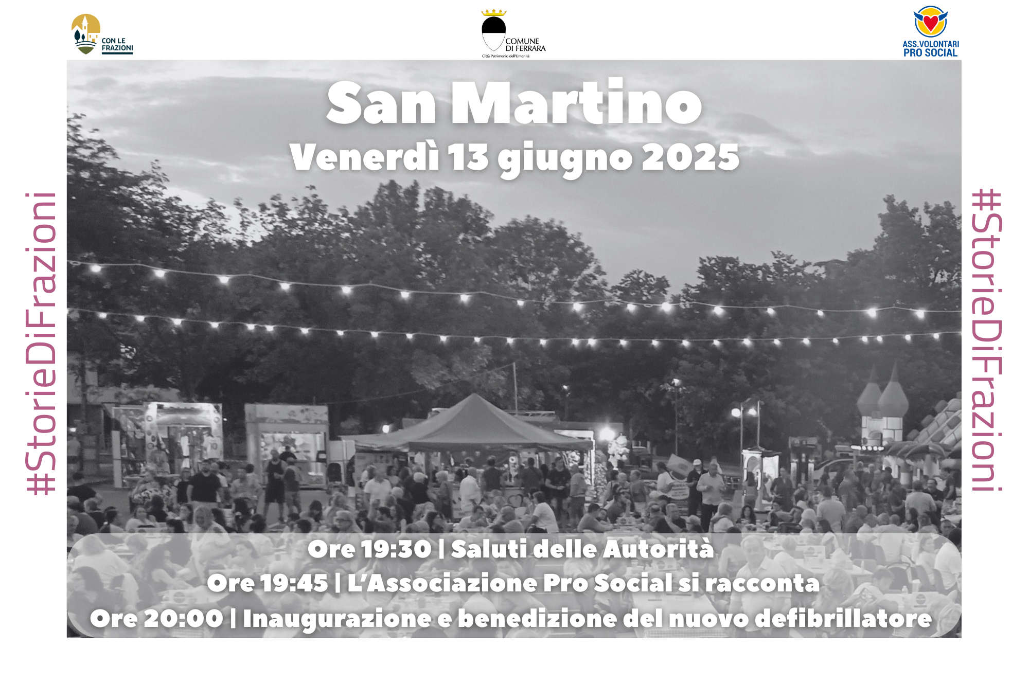 La prima storia di quest'anno è dedicata al lavoro dell'associazione volontari Pro Social di San Martino. Sul palco, dopo i saluti del sindaco Alan Fabbri e dell'assessore alle frazioni Cristina Coletti, saliranno dunque i volontari per raccontare anche il loro impegno nell'organizzazione del SanMa Beer Fest, che da quattro anni anima il centro di San Martino e che è frutto di una costante attenzione alle necessità della frazione e alla voglia di stare insieme della sua comunità.