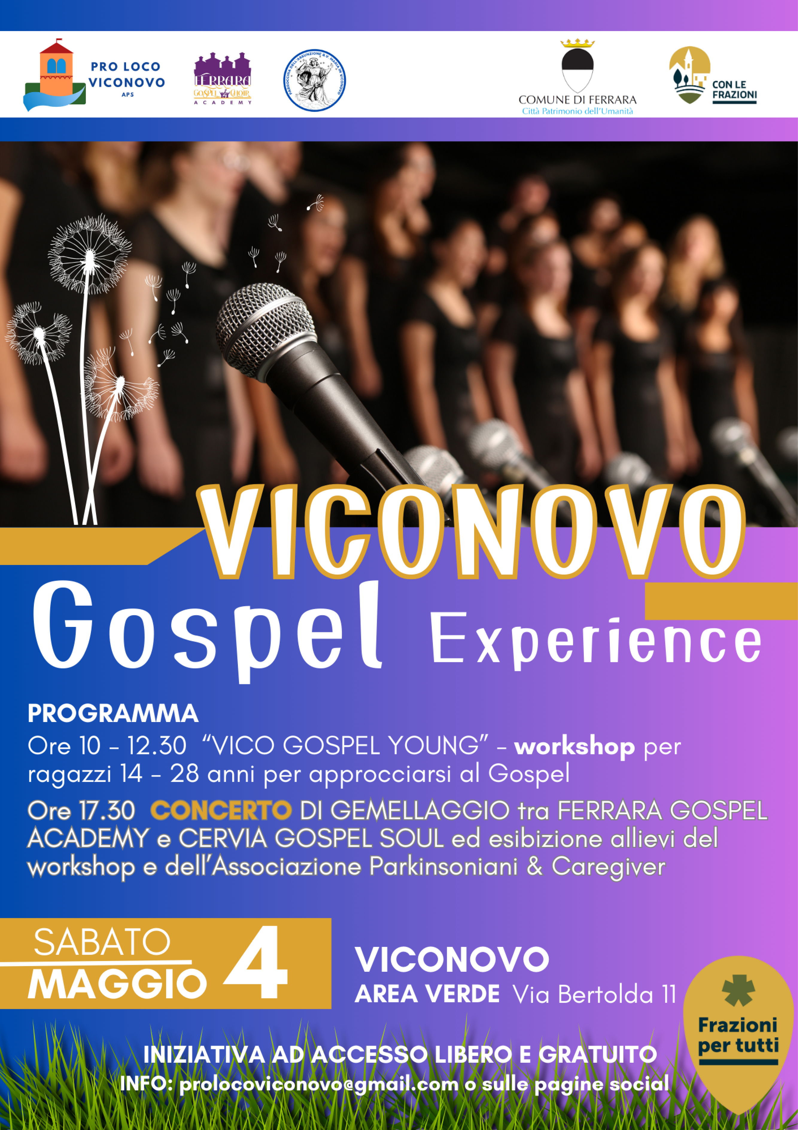 Un workshop dedicato ai chiunque si voglia cimentare nella magia del canto gospel. Non mancherà il concerto finale nello spazio verde che circonda la parrocchia di Viconovo.